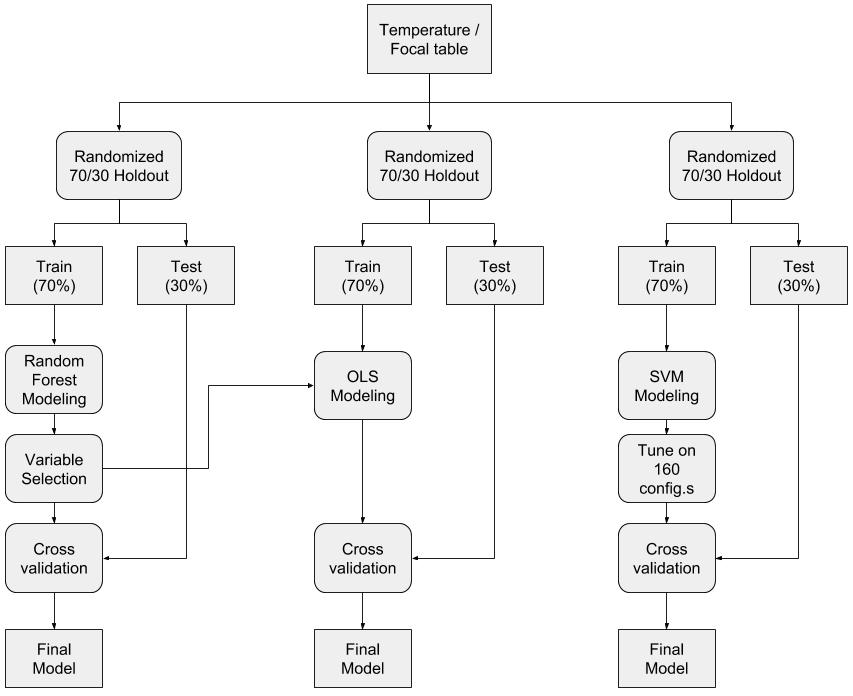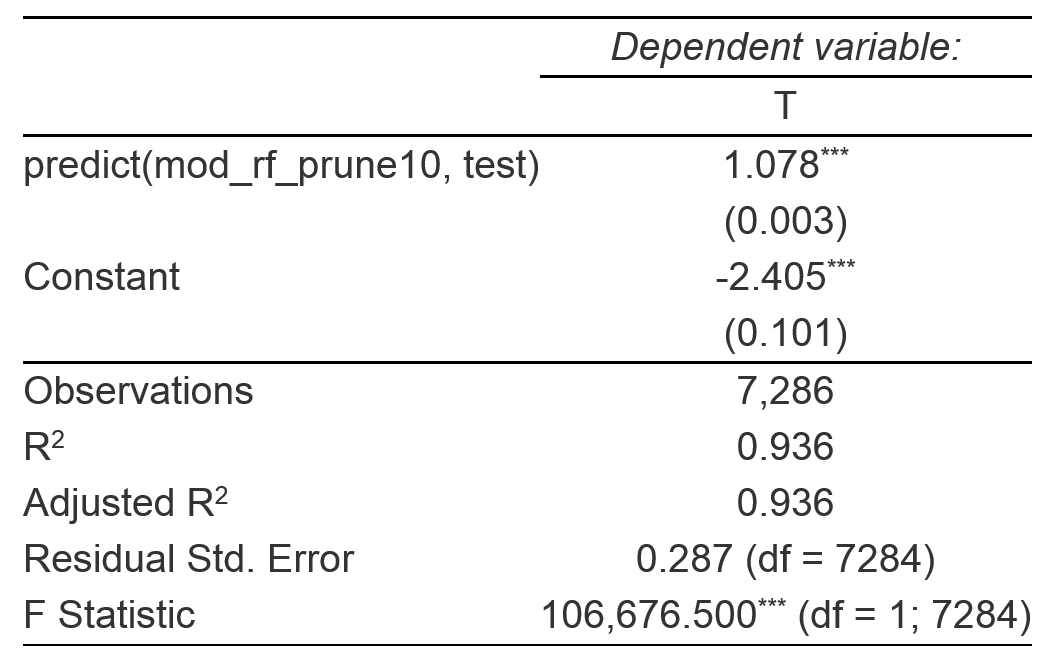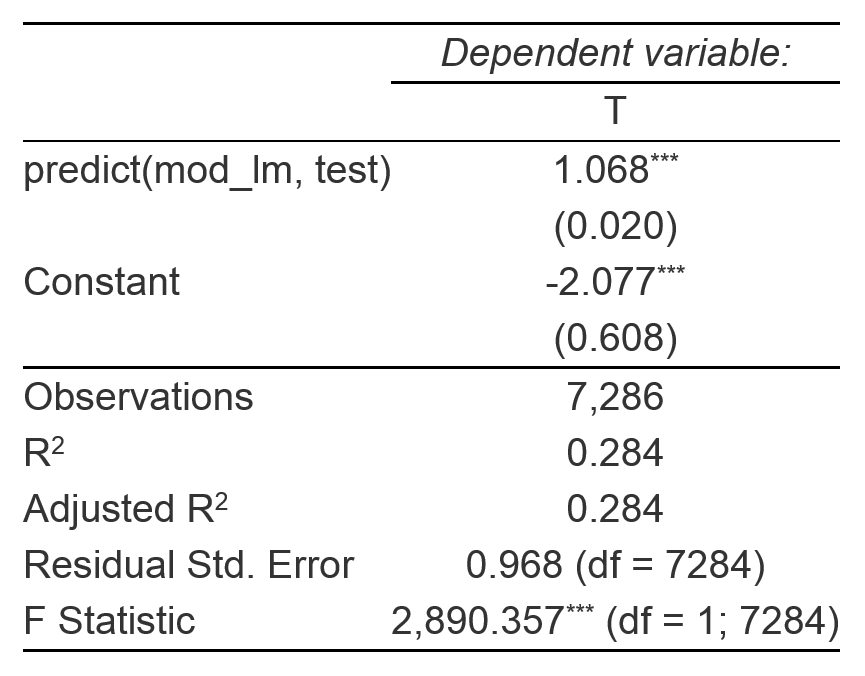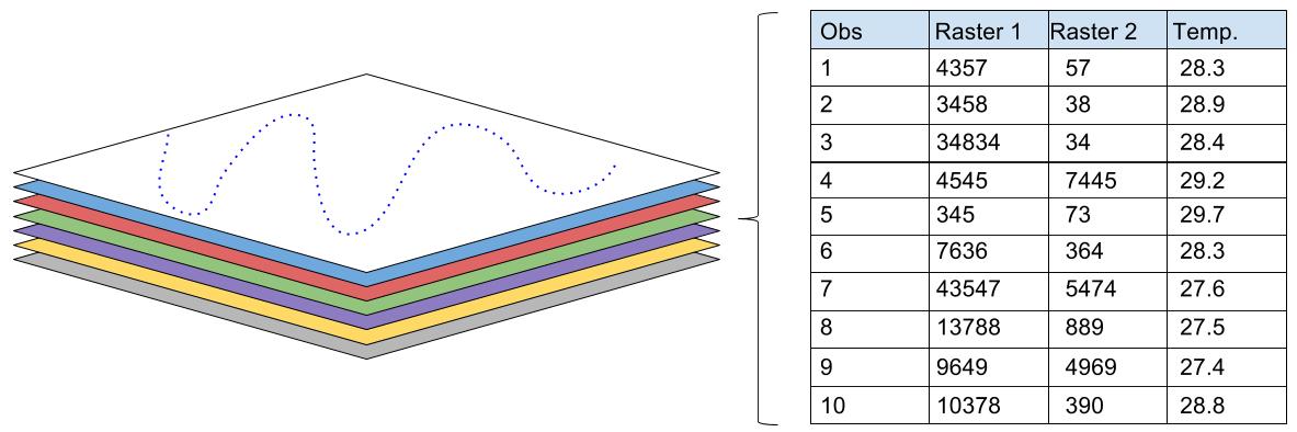 For all 650 rasters, cell values at each temperature measurement point are collected. This results in a table with 651 columns (including observed temperature) and a row for every temperature observation.