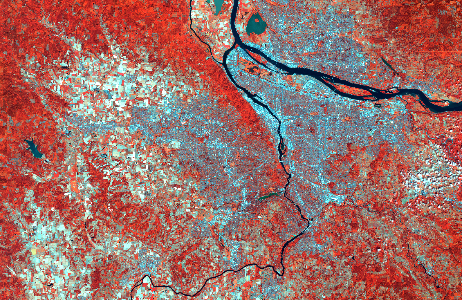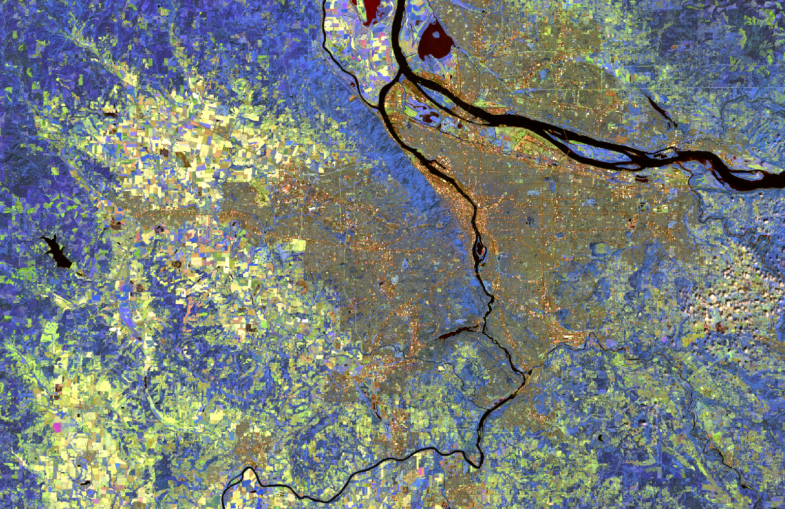 Data for Portland Metro and Eugene, Oregon taken on July 27, 2016. Acquired through Google Earth Engine.