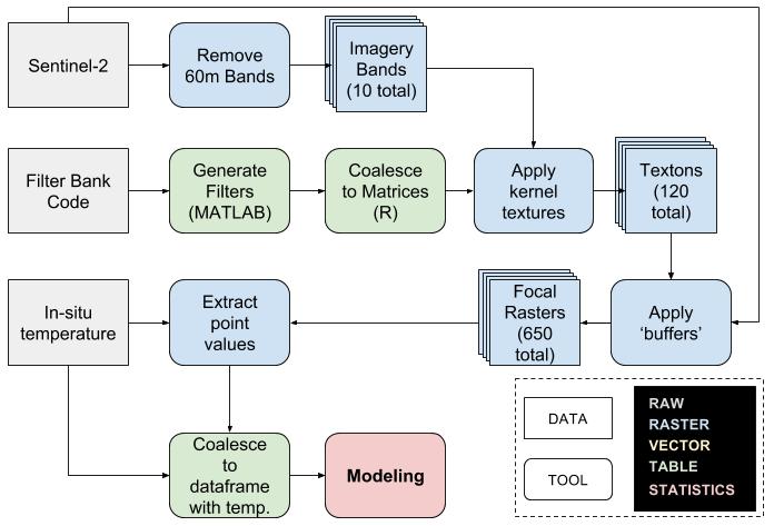By converting individual imagery bands into regional descriptions of their own internal variability/texture, it is possible to accurately predict urban heat.